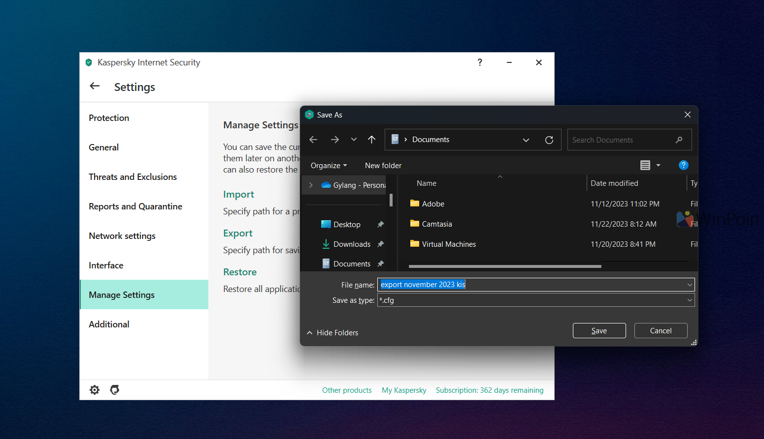 The post Cara Import dan Export Settings Kaspersky Internet Security first appeared on WinPoin.